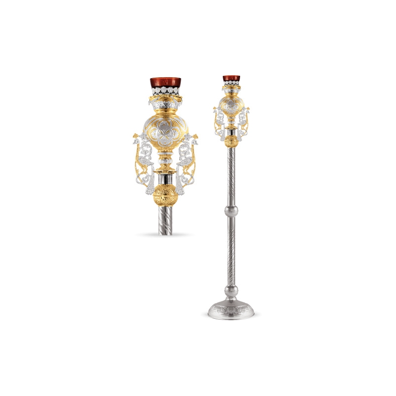 Καντήλι Ακοίμητο Αγίας Τραπέζης Σκαλιστό Δίχρωμο(Μπρούτζινο-Νίκελ).Ύψος: 23 cm