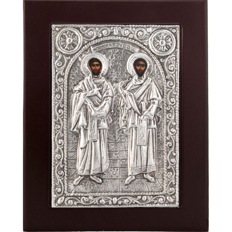 Εικόνα Επάργυρη Άγιοι Ανάργυροι 19 χ 24