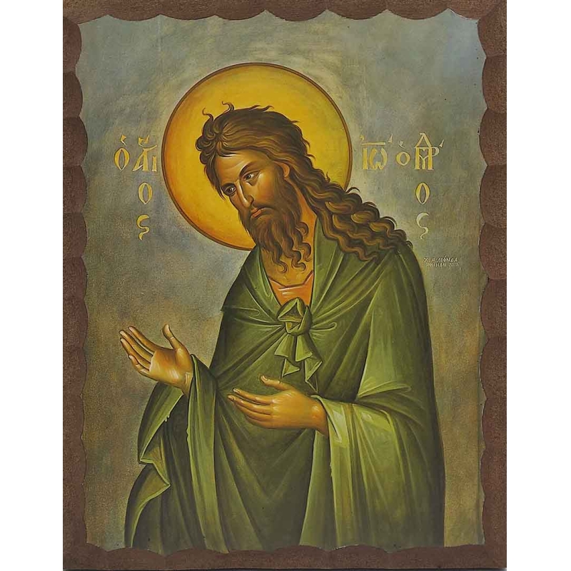 Εικόνα Ξύλινη Άγιος Ιωάννης Ο Πρόδρομος Με Πράσινο Φόντο 14,5 χ 20