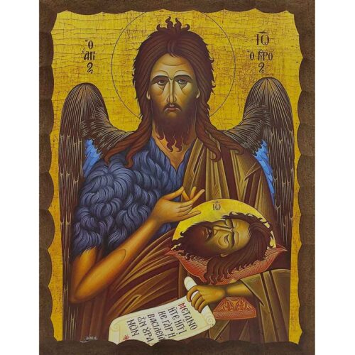 Εικόνα Ξύλινη Άγιος Ιωάννης Ο Πρόδρομος Σκαφτή Μεταξοτυπία 19 χ 25