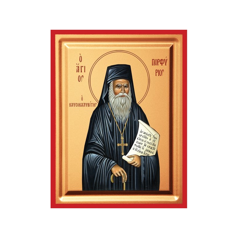 Εικόνα Ξύλινη Άγιος Πορφύριος Σκαφτή Μεταξοτυπία 19 χ 25
