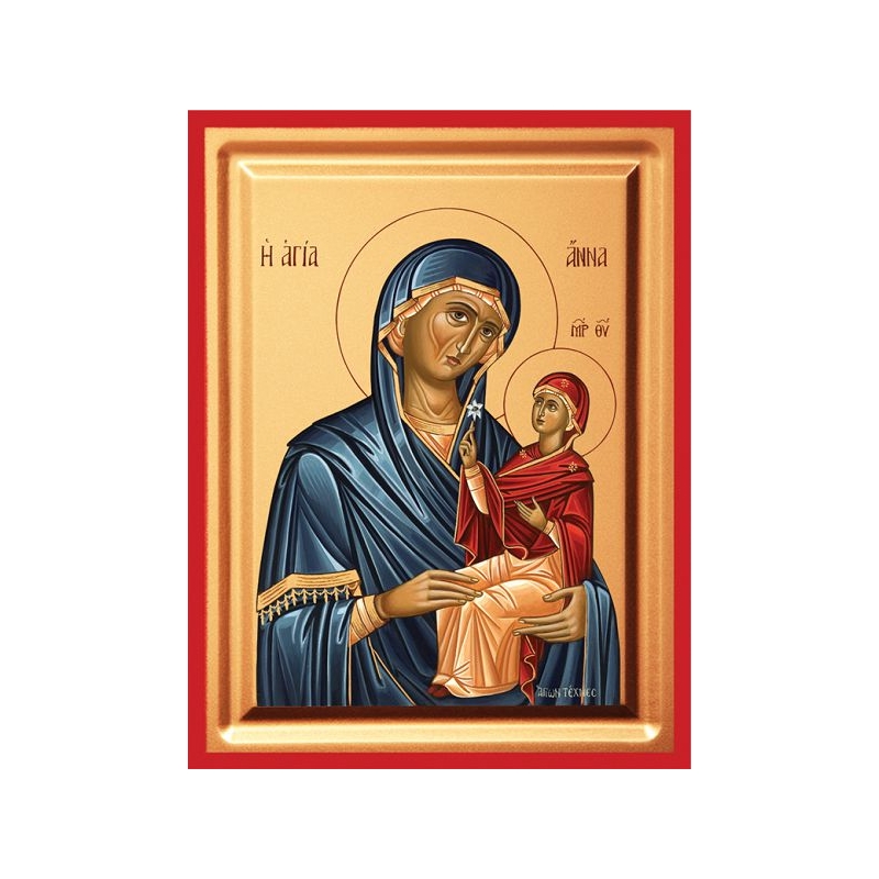 Εικόνα Ξύλινη Αγία Άννα Σκαφτή Μεταξοτυπία 14 χ 18