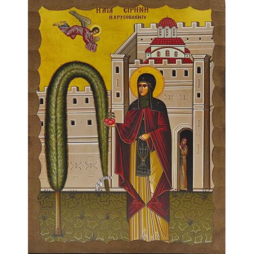 Εικόνα Ξύλινη Αγία Ειρήνη Χρυσοβαλάντου Σκαφτή Μεταξοτυπία 14 χ 18