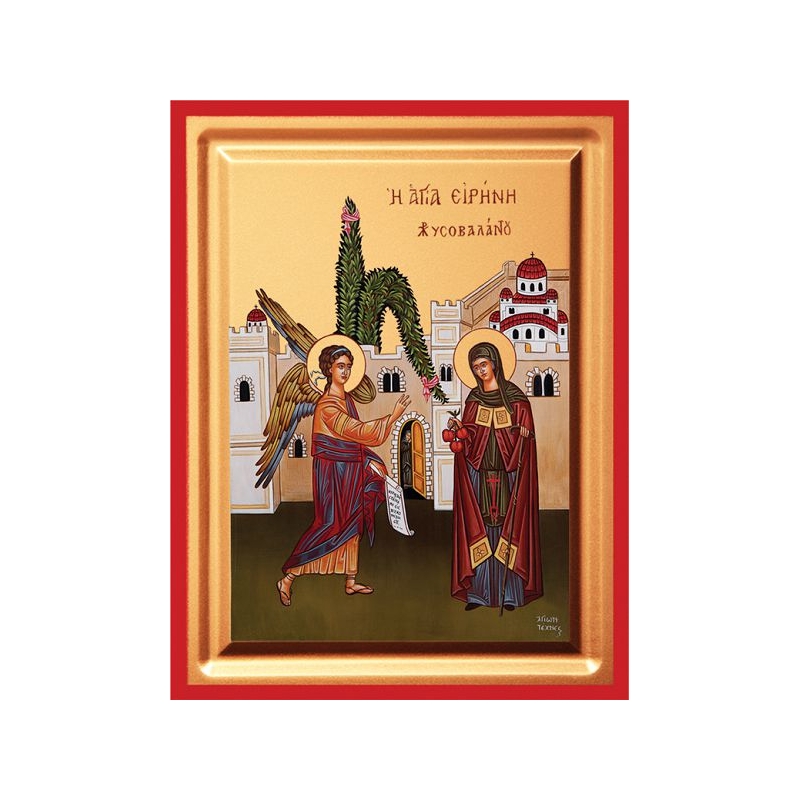 Εικόνα Ξύλινη Αγία Ειρήνη Χρυσοβαλάντου Σκαφτή Μεταξοτυπία 19 χ 25