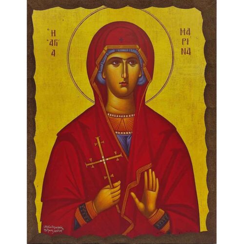 Εικόνα Ξύλινη Αγία Μαρίνα Σκαφτή Μεταξοτυπία 19 χ 25