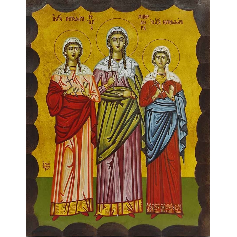 Εικόνα Ξύλινη Αγία Μητροδώρα, Αγία Μηνοδώρα, Αγία Νυμφοδώρα 21 χ 27