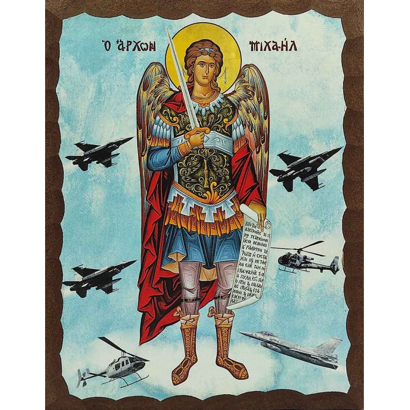 Εικόνα Ξύλινη Αρχάγγελος Μιχαήλ Με Μπλε Φόντο 21 χ 27