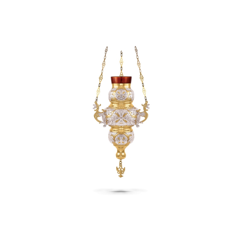 Καντήλι Ακοίμητο Αγίας Τραπέζης Σκαλιστό Δίχρωμο(Μπρούτζινο-Νίκελ).Ύψος: 23 cm